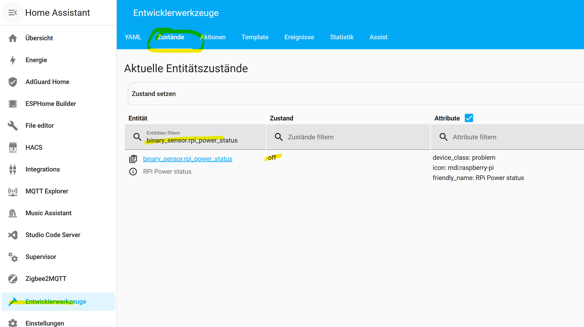 Was wird für den Sensor binary_sensor.rpi_power_status angezeigt?