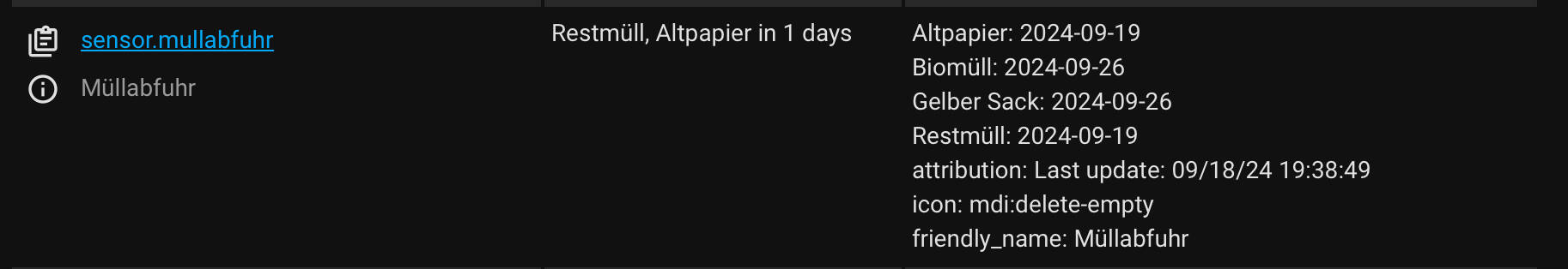 @el_honi Hi! Kannst du bitte einen Screenshot von der Entität posten, also wie die Attribute da aussehen, wenn 2 Müllarten abgeholt werden?