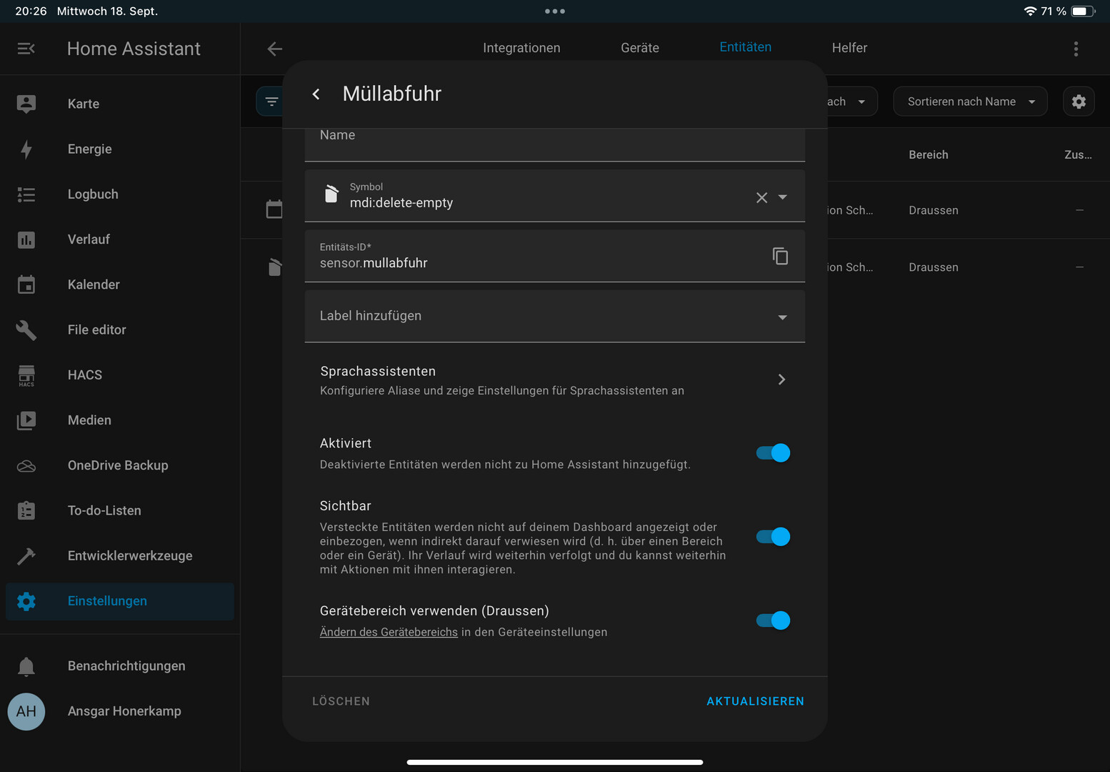 Ich nutze schon lange eine Müllbenachrichtigung mit Home Assistant, wenn am Folgetag eine der Mülltonnen geleert wird. Hierzu habe ich bislang ziemlich individuellen und auf meinen Bedarf zugeschnittenen Code benutzt: Per PHP lese ich die vom lokalen Müllentsorger bereitgestellte iCal aus, generiere mir hieraus eine XML und scrape diese dann mittels Home Assistant. Das alles geht jedoch deutlich einfacher, wenn man die HACS Integration Waste Collection Schedule nutzt. Wie genau du dir hiermit auch eine Müllbenachrichtigung mit Home Assistant für dein zu Hause erstellen kannst, beschreibe ich in diesem Beitrag! [toc] Waste Collection Schedule in HACS installieren Wie bereits im…