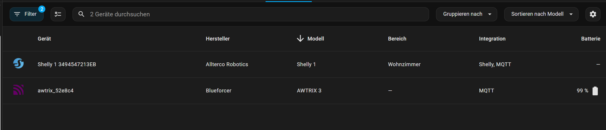 Im HA (Geräte – MQTT) findet er nur einen Shelly (siehe Foto).